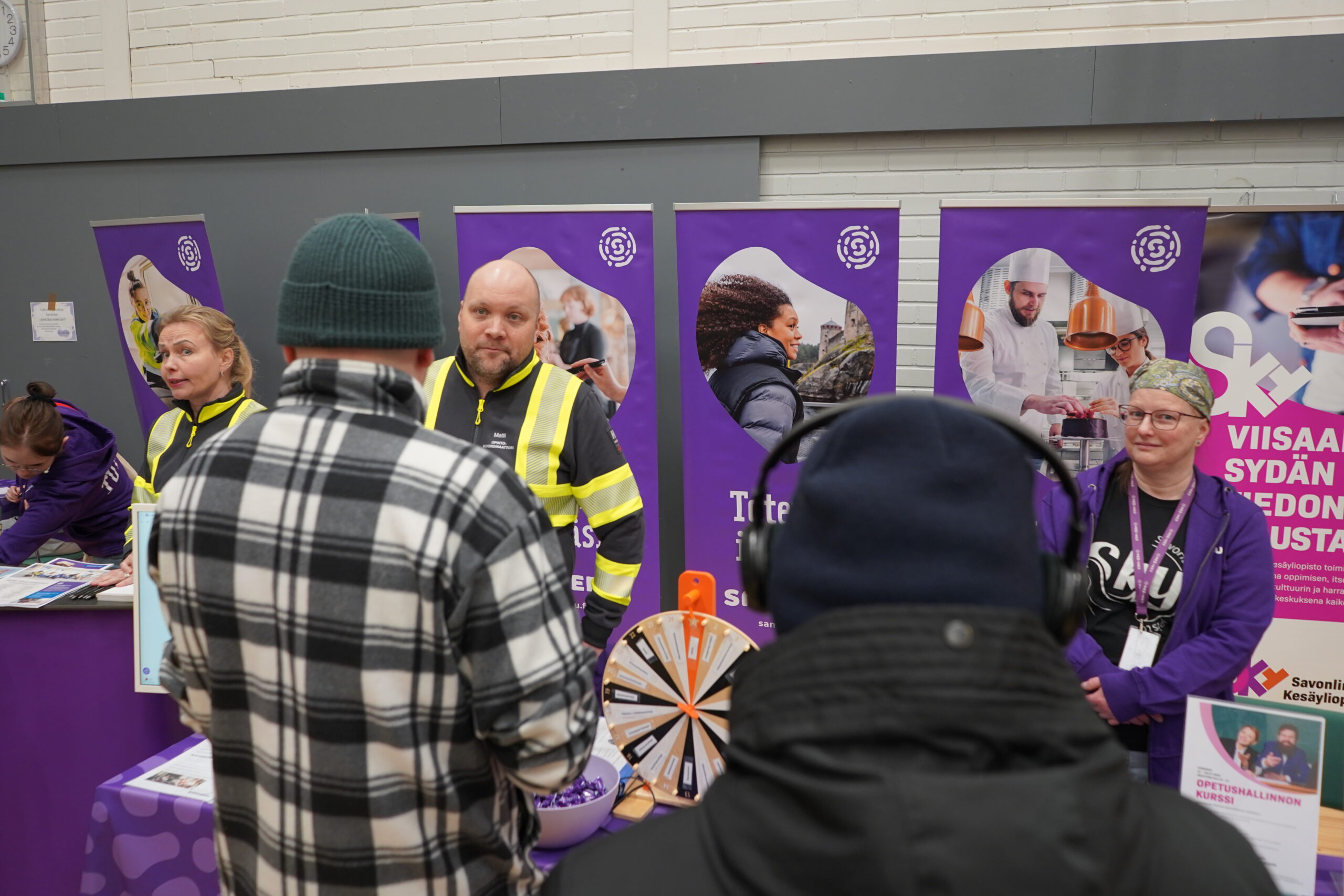 Samiedun ja Xamkin yhteisillä Rekrymessuilla oli tarjolla monipuolinen kattaus eri alojen työnantajia, yhdistyksiä, ammattiliittoja ja palveluita. Lähes 50 esittelypisteellä pystyi tutustumaan työ- ja koulutuspolkuihin sekä kyselemään työnantajilta esimerkiksi kesätyömahdollisuuksista. Päivän aikana Pohjolankadun kampuksemme liikuntasaliin kulki jatkuva asiakasvirta.